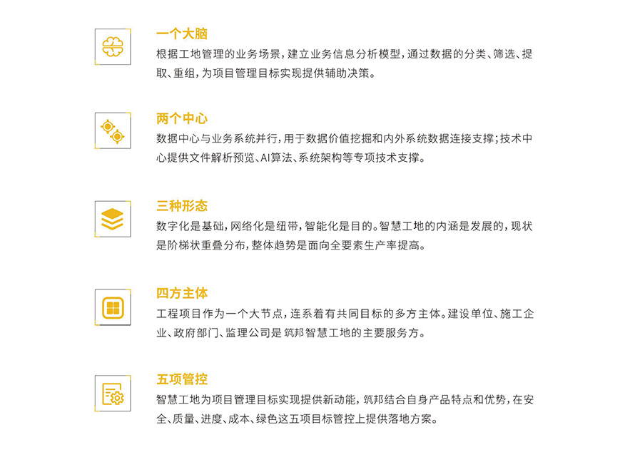 【筑邦鴻昇】智慧工地管理系統平臺圍繞工地現場人、機、料、法、環五大生產要素,綜合運用“BIM、AI、機器人、邊緣計算、無人機、5G、XR、區塊鏈”八大信息技術,通過數字化、網絡化、智能化實現項目全局優化,保障工程質量、安全、進度、成本等管理目標的順利實現,助力您的項目成為智慧文明安全工地,在省優市優文明工地評選中占據優勢。