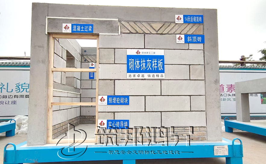 [筑邦鴻昇]砌體抹灰樣板,施工工藝工法質量樣板是根據施工單位的要求和標準制作,展示其在本工程所采用的材料及其質量、施工工藝、施工流程、技術水平及施工質量。砌體抹灰樣板,不僅是展示施工工藝、明確施工質量、展現施工流程、探索施工技術的一種有效手段,也是向外界展示工程品質和企業形象的廣告牌。