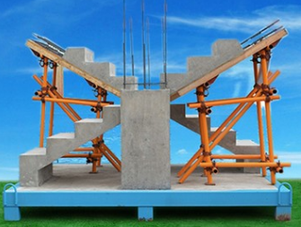 展示工藝:鋼筋混凝土、鋼筋綁扎、支模體系支撐立桿垂直于地面、混凝土成品、梯板鋼筋綁扎、樓梯模板卡槽式支附與加固、梯板1/3處混凝土施工縫留設等工藝。